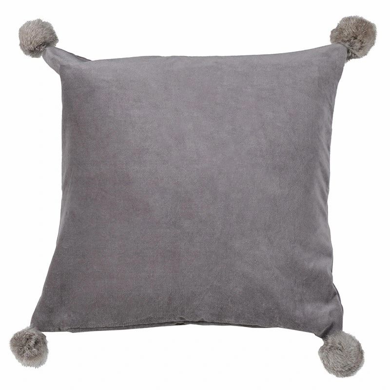 Gloria Grey Velvet Pom Pom Cushion Covers 40 x 40cm SPECIAL OFFERS