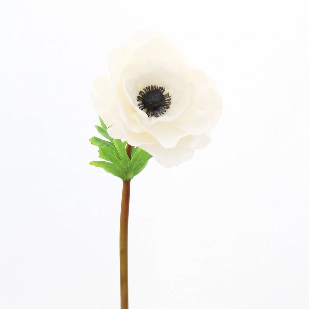 This beautiful artificial anemone has soft white petals and a deep black/navy centre, it brings a modern twist to any bouquet.