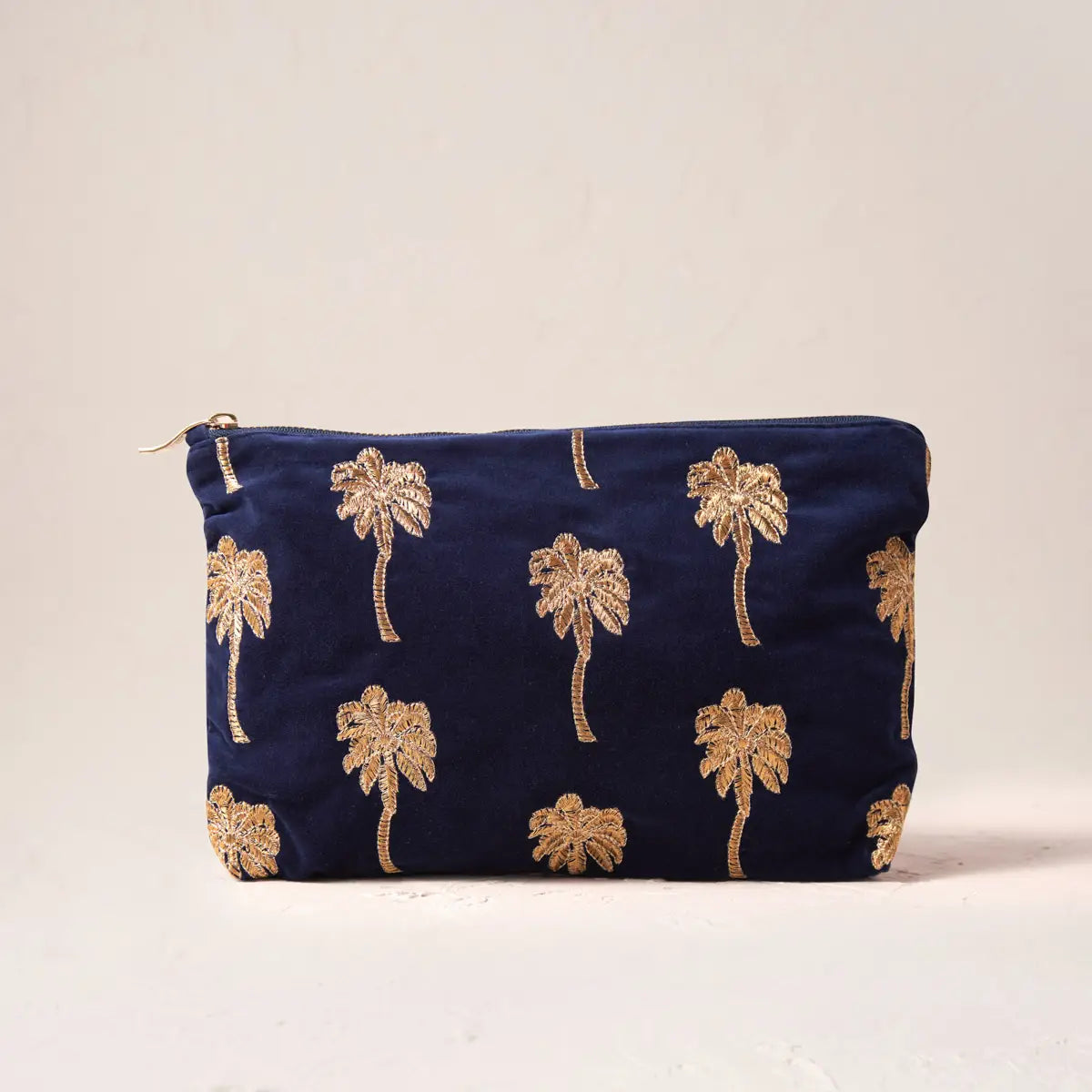 Elizabeth Scarlett Navy and Gold Palm Velvet Everyday Pouch